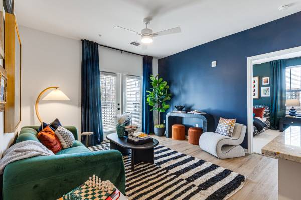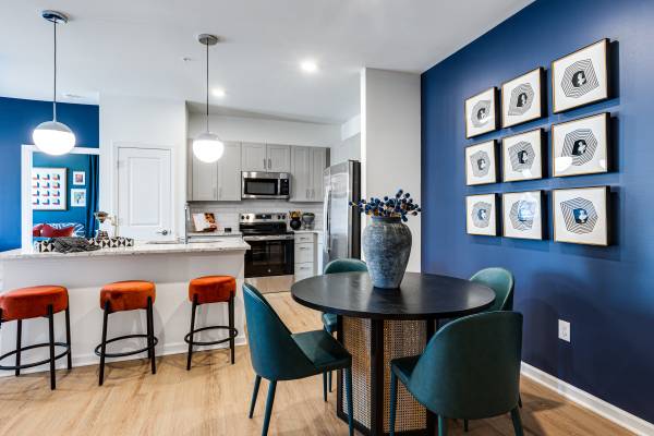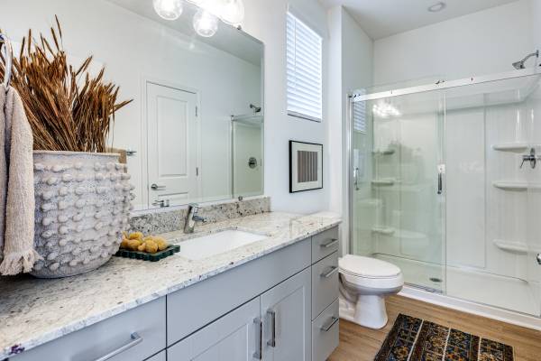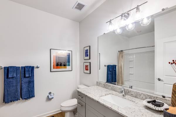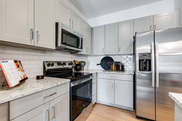 Our two bedroom two bath apartment homes are 1114 sq ft. Your home has 9’ ceilings, in home Washer/Dryer, stainless steel appliances, double door fridge with water and ice dispenser, smart locks, granite countertops, tile backslash in your kitchens, gourmet kitchens with island and farm style sinks, linen and pantry closets, built in USB chargers, ceiling fans with lighting, walk in showers and soaking tubs, walk in closets, wood style flooring, carpet in bedrooms only. Our prices include Resident Liability Insurance, Valet Trash, Recycling, Pest Control, Packages, and RentPlus.