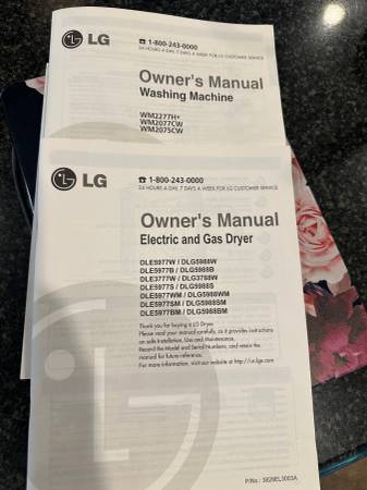 LG washer and dryer. They are 19 years old and still going strong! We are just wanting to replace with new ones (same models). They have served us well, and we really like the LG. Consumer Reports rates LG as top brand. You can see from the photo of the closeup of the washer, there are some rust spots from the kids overflowing with vinegar and Clorox over the years. Have touched it up with appliance paint. The drawer/stands on the bottom are NOT INCLUDED. This would make a good transition pair for a college student or someone needing a good washer/dryer until you can replace them for newer ones.