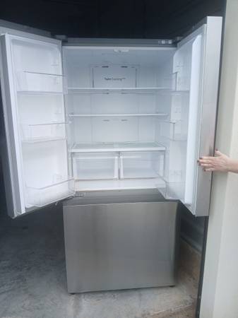 Used, like new. Dual doors with freezer in bottom drawer. Smart technology with Bluetooth capabilities. Must be able to move yourself.