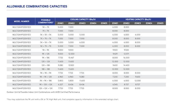 The MULTI24HP230V1EO is AHRI Certified. Multiple refrigerant output ports allow it to be connected to up to 3 indoor units, and is compatible with a wide range of indoor unit options from Gree including other wall mounted heads, ceiling cassettes and floor cassettes. -22F to 118F operating range is great for homes or server rooms/industrial utility rooms which need year round cooling even when it's below freezing outside.