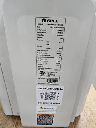 - One Gree Vireo 3VIR12HP230V1AH Gen 3 wall mounted head unit with WiFi adapter and remote control included in set, condenser has ports to add up to two more.