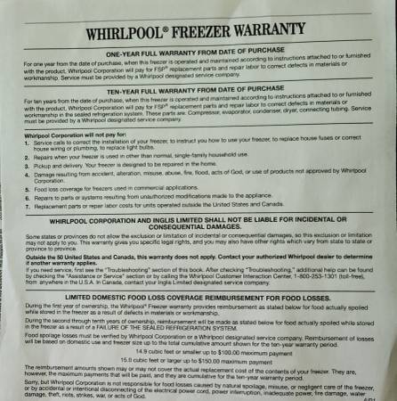 - Remaining warranty for parts and labor through April 26, 2026