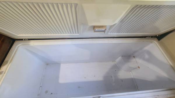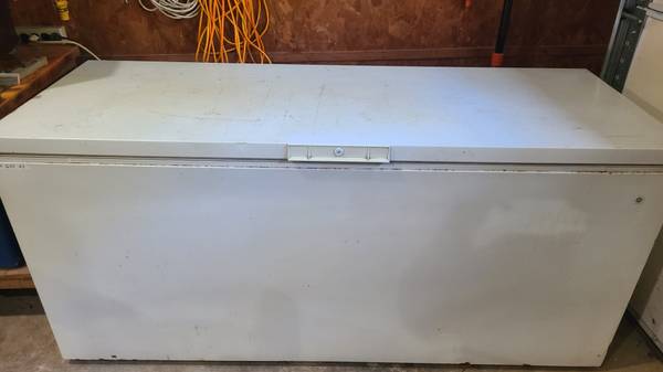 I believe it's around 22 cubic feet. Some scratches and dents and small rust spots. Runs perfectly and gets very cold. I used for beer fermentation and venison aging. Will include an ink bird external temperature controller if wanted for use in those situations, otherwise freezer thermostat works fine. Pickup only
