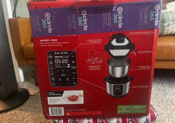 NEW IN BOX ! The current retail is $139.99 at most places so the listed price here is still a phenomenal bargain! I don’t believe it’s ever even been removed from the box, I only opened it up and never used it. Instant Pot 6qt 9-in-1 Pressure Cooker Bundle includes exclusive accessories, making it a versatile kitchen essential. This electric pressure cooker by Instant Pot boasts a 6 qt capacity, 24 hr maximum timer setting, and is made of stainless steel for durability. With a sleek silver design and a 1 year manufacturer warranty, this Instant Pot model IP-LUX60V3 is a reliable and efficient appliance for cooking a variety of dishes with ease. A must have for busy families!