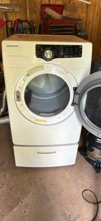 Nice Samsung electric dryer for sale with pedestal. Just installed new roller wheels, idler pulley and belt. Needs to be picked up. Asking $175 Everything works on the dryer as it should. Delivery...