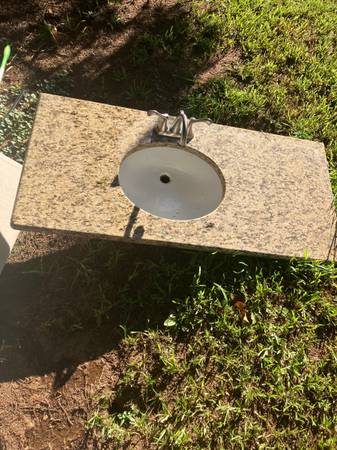 Nice 40 inch granite countertop, with sink and faucets. Super nice! There is little notch on one side where went around door trim but can cut straight or use as is. Great deal 60 obo come check it...