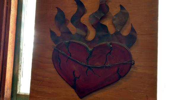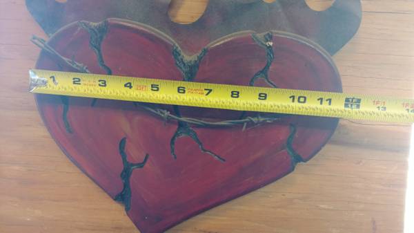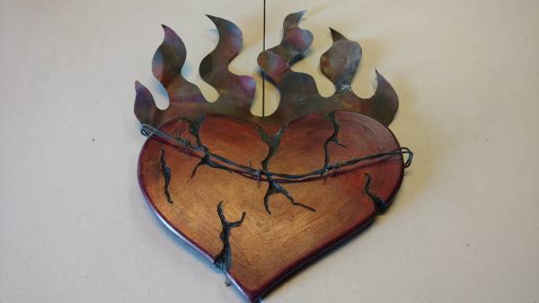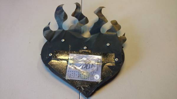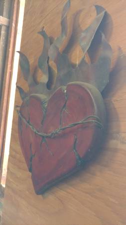 COOL WALL ART - HEART WITH FLAMES - R&R! / BIKER ART - MAN CAVE - SEE PHOTOS - 12"W X 17"H - Wood With Metal Flames - Solid - Hand Made in America - Custom Made - (see photos) $7 Firm - Contact...