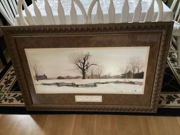 Bob Timberlake “Late Snow at Riverwood” Framed Print for sale for $150.00. It measures 46” x 31” and is in excellent condition. Please call or text .