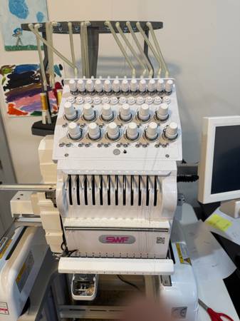 NEW SWF MAS 12. The SWF MAS 12 needle industrial embroidery machine, while sleek and compact in size, comes packed full of new features that completely set it apart from every other machine in its class. This single-head industrial embroidery machine offers 12 needles, a flat sewing field of 13 inches by 8 inches, and a design memory of 4 million stitches. Whether you're new to embroidery or looking to add a cost-effective second machine, the SWF MAS 12 delivers the best of everything — technology, design, reliability, and size.