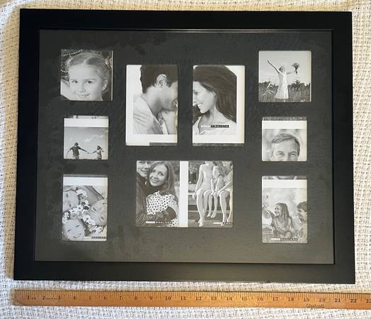 Display your cherished memories in a sophisticated and modern way with our 18" x 22" collage frame. Perfect for a variety of occasions, this frame is designed to accommodate multiple photos, ensuring your favorite moments are showcased in a stunning display. Or the mat can be replaced to accommodate a single picture. The interior space is 19.5” x 15.5”. Crafted from high-quality engineered wood with a sleek matte black finish, it’s an elegant addition to any room. The frame features a black mat that helps to enhance the contrast and durability of your photographs. It's versatile, offering both horizontal and vertical orientation options to fit your space perfectly. The rear-loading design makes photo insertion easy, and the fully tempered glass provides added protection while maintaining a clear view of your memories.