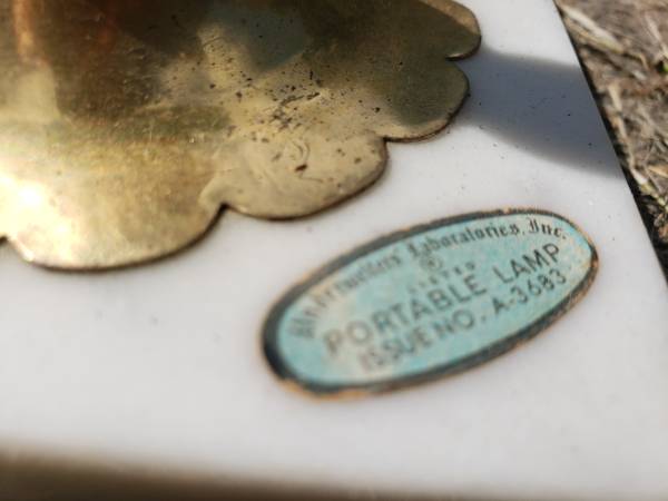 Good condition with minimal wear, some minor nicks/chips to marble base, light tarnishing to ring. Appears to be original long white cord.