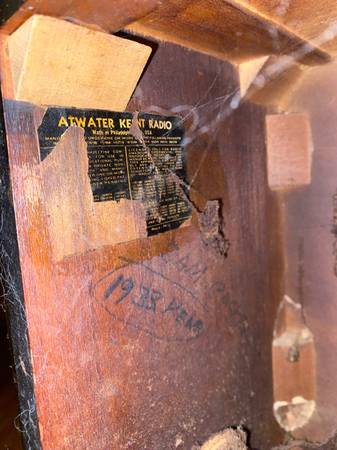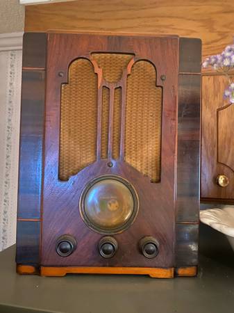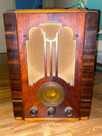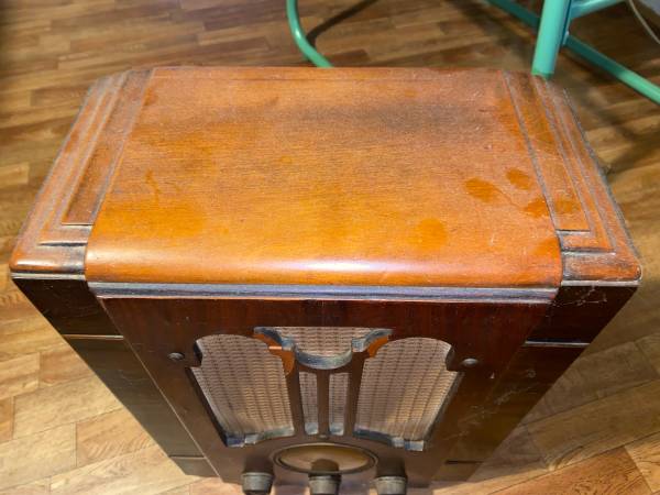Needs a little love; a good restore project for someone who loves antique radios. There's a good bit of dust in the back of the unit but otherwise the wood is in great condition. Reasonable offers...