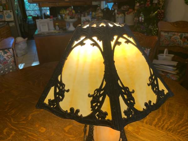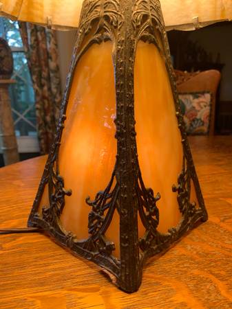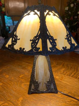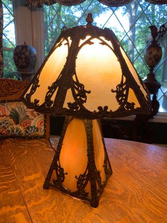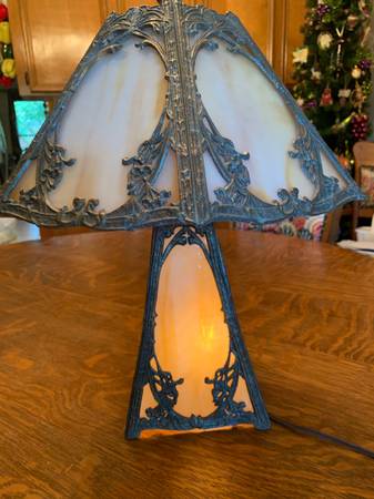 18 inch tall vintage slag glass lamp. Both top and bottom light up, or you can just use the bottom part as a nightlight. Asking $345.