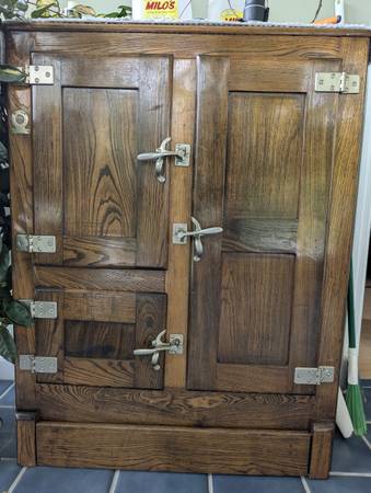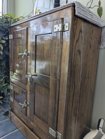 Antique oak ice box. Perfect for that special place in your home. There are no penetrations in the interior sections. Interior pictures added 10/11/25. Cash only