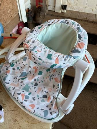 Graco bassinet ( not working only bassinet) $30 Cosco bouncy $25 Fisher price floor seat $15 Angelcare bathtub seat $10 All good condition