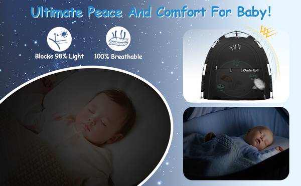 KinderRoll Deluxe Blackout Sleep Tent for Over Bassinet, Pack n' Play, Etc.