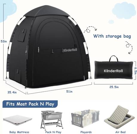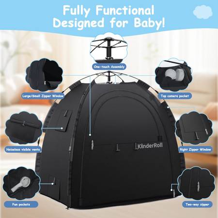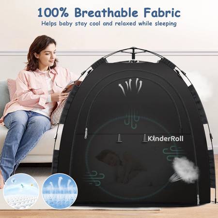One Button Set Up: Traditional blackout tents are difficult to install and require multiple people to assist. KinderRoll Blackout Sleep Tent takes the hassle out of the process, simply unfold the tent and press the top fixture down gently, setup is complete in 10 seconds.