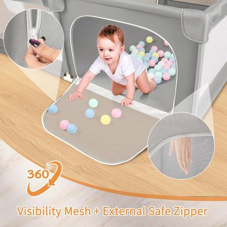 360 ° full visual design: The baby playpen has a 360 ° full view, letting the parents know the baby's condition at any time. The external zipper design prevents the baby from pulling the zipper open, so only parents can open from the outside.