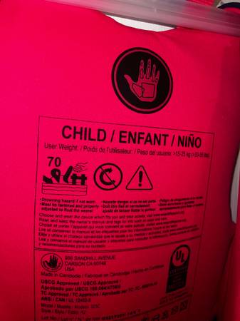 Childs 33-55lbs Child size Evoprene PFD US Coast Guard Approved New with Tags Great for boating, swimming, beach, lake, water boys girls vest