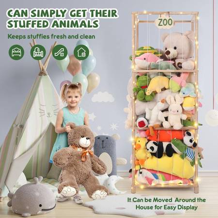 New XL Wooden Stuffed Animal & Toy Storage Zoo Cage w/Lights