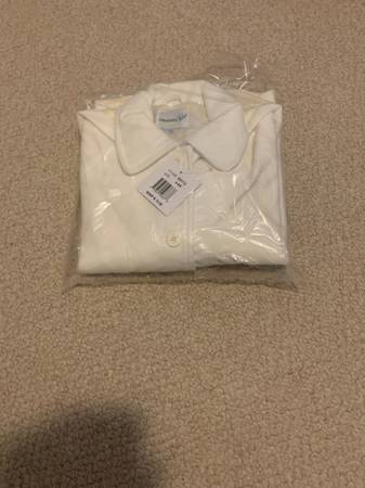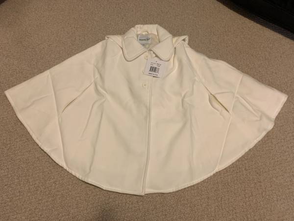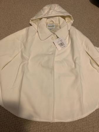 beautiful Creamy White Poncho with collar & hood 3 large buttons and 2 snaps for closures 2 slits for putting your arms through Fits sizes 4 thru 6X jacket sweater cool weather