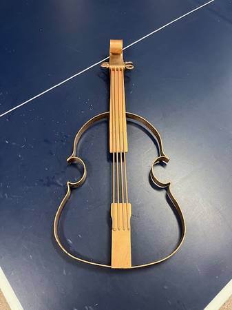 28 inches by 12 inches. If you are a musician this metal replica of a violin/cello would look great on your door or wall. Made of strong metal and would be a great conversation piece. Asking $10.00