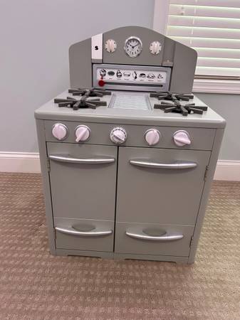 Pottery Barn kids- Retro stove(gray). In gentle used condition. Missing a pepper shaker. $100 cash. Serious inquiries only please. Dimensions are 22”x18”x 32”h Cross Posted. Comes from smoke free home
