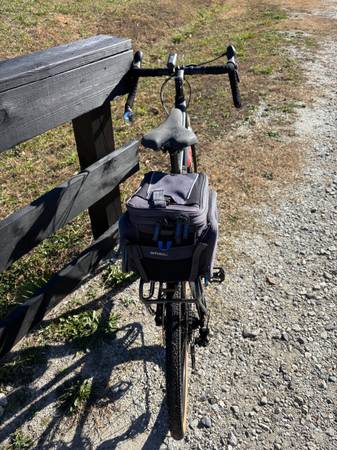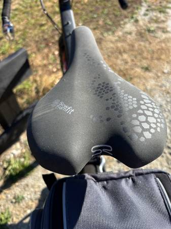 Black Friday *** Cyber Monday Special Nearly new- Less than 25 miles on bike Looks New Black Pedal shoe clips Bike Shoes size 11-12 Head light Basil bag and pannier Mud flaps Upgrade slow foam seat...