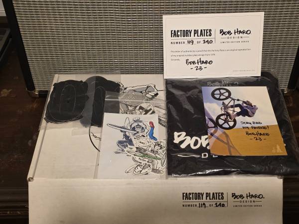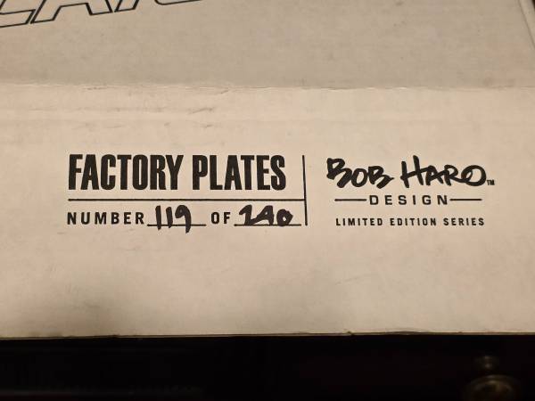The extras are the limited edition factory plate in new/never used condition, hand signed and numbered by Bob himself as well as a hand signed photo from Bob.