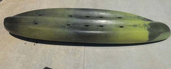 ***Kayak model came with integrated rod mounts in the rear, a squirrel decided to store its nuts in there and when it couldn’t get them out, chewed into the mounts. I cut the mounts out as seen in the photo and was just going to put a fiberglass patch over it but decided to leave it open in case the next owner wanted to do something different. Nothing else wrong with kayak. I included a stock online photo to see what it looked like previously.***