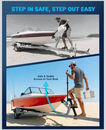 Safe & Stable Steps, Effortless Boarding - Heavy-duty steel boat trailer steps, 300-350 lb rated, ensuring confident boarding every launch.