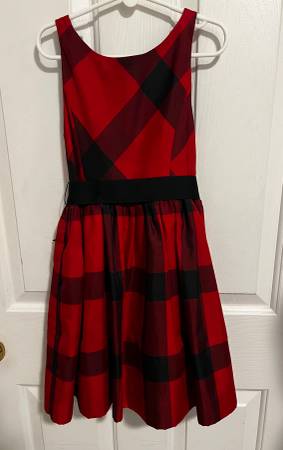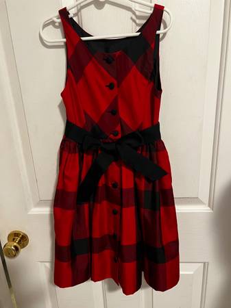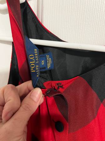 Pretty Christmas dress - black & red plaid w/ black ribbon belt. Could be tied in front or back. Lined Polo Ralph Lauren Sz 6X