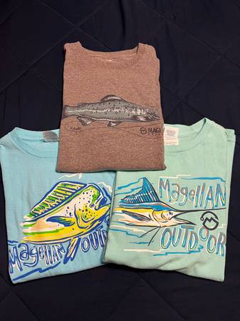 3 gently worn tshirts Magellan fish shirts Sz Medium Grey, mint green, sky blue