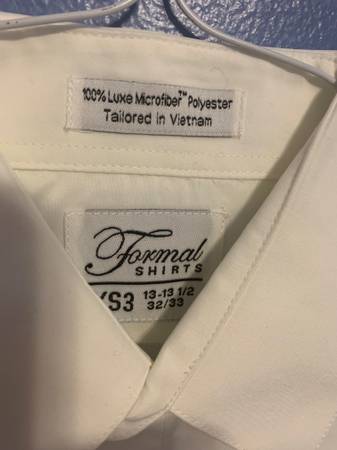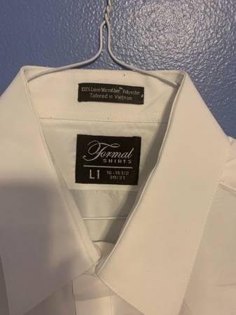 1 - "Formal Shirts" sz XS 13-13.5" 32/33 2 -"Formal Shirts" sz Lg 16-16.5" 30/31 $9 each obo wedding prom tux tie shirt tuxedo party