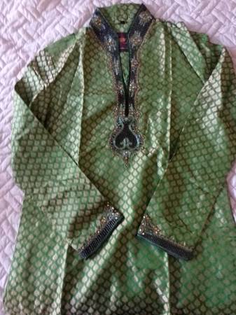 Authentic? Handmade? Beautiful!! Three long tunics. Three matching linen pants. Brands: Azania, Purush Much beading on all. They seem to be fancy or formal? Size tags say 34 or 38? More photos...