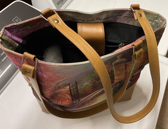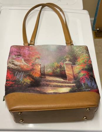 Thomas Kincaide “Enter His Gates” scripture purse in like new condition. This lined handbag snaps shut and has a zippered compartment for small items. This is an ideal Mother’s Day gift.