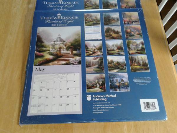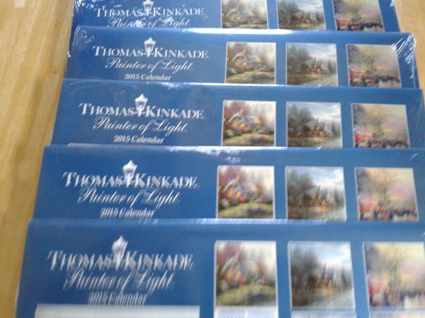 I have 7 new in plastic Thomas Kincaid Painter of Light 2015 Calendars for sale $20.00 for all.
