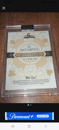 2024 Wild Card 5 Card Draw Stacked Deck jackpot pack 1/1 JJ McCarthy Diagonal Black & Gold Refractor Ace of spades card. $45 obo. MUST PICK UP
