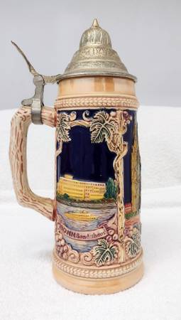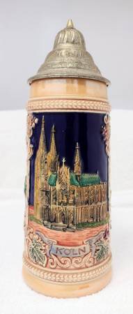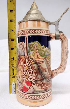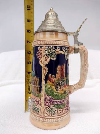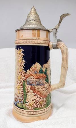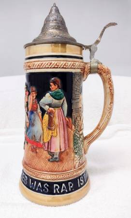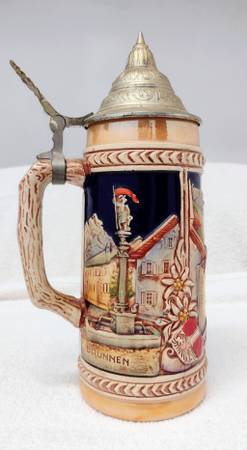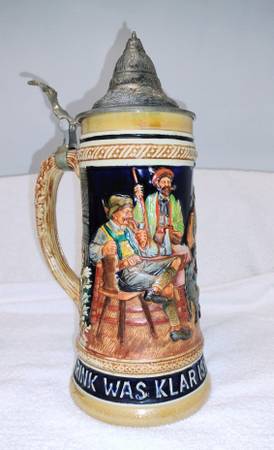 Four German Steins. I purchased three of these Steins in Europe back in 1967, I can't recall when or where I picked up the fourth stein. They have never been used, just put on display. There are no chips or cracks, they are in perfect condition. Selling all four for $45.