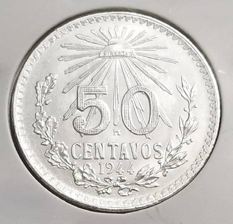 1944 Mexico ESTADOS UNIDOS MEXICANOS 50 Centavos Silver Coin Composition: Silver Weight: 8.3333g ASW: 0.1929oz Diameter: 27mm