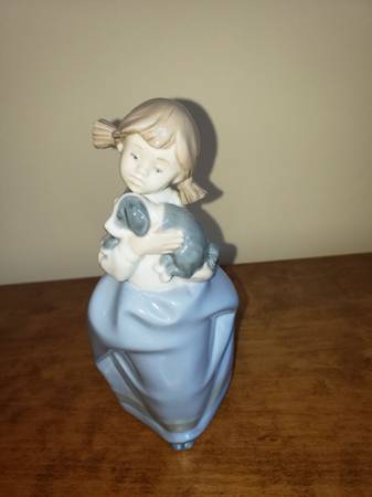 NAO by Lladro Girl Holding Puppy Porcelain Figurine DAISA 1987 Made in Spain Approx 7.5" Tall Excellent condition See pictures for details Local pick-up, Cash only