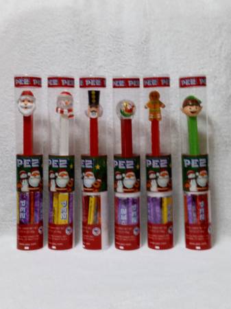 Here's some Christmas Pez characters. Santa, Elf, Snowman, Nutcracker, Gingerbread Man & Snow globe. I have multiples of a few of them. Includes 2.03 oz. of candy. Looks to be 5-6 packs. Candy...
