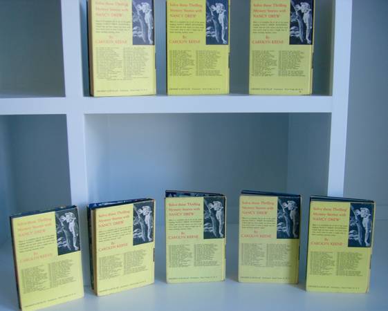 In 1962, Grosset and Dunlap introduced the picture cover and these books featured yellow spines and back covers (YSPC). The basic features for these were a matte cover with illustration, the name, author, volume number and publisher Grosset & Dunlop on the spine. Also, the spine had the symbol of Nancy's profile. All of these books have the original 25 chapter texts; only volumes 1-34 were ever printed in the original text books. None of these books has dust jackets.