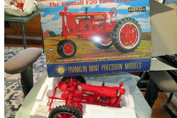 This is a FRANKLIN MINT FARMALL F20 TRACTOR 1:12 SCALE in ORIGINAL BOX! Reduced from $250.00 and now only asking $149.00 OBO! We live North of Dacusville, SC which is 14 miles North of Easley, SC....