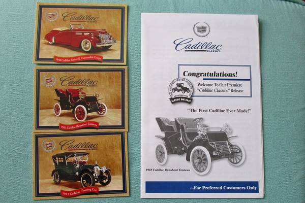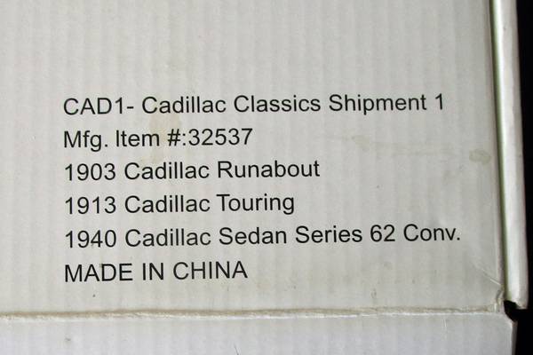This is a lot of (3) National Motor Museum Cadillac's: 1903 Runabout, 1913 Touring, and a 1940 Series 62 coupe. They are 1:32 scale and new in the box!