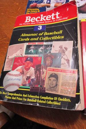 This is a lot of 4 used Sports Card Books. They include:1999 Standard Catalog of Football Cards, Beckett Almanac of Baseball Cards and Collectibles #3, 2000 Beckett Sports Collectibles Magazine, and a 2008 Tuff Stuff Sports Collectors Magazine.