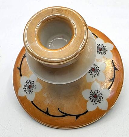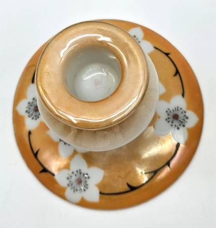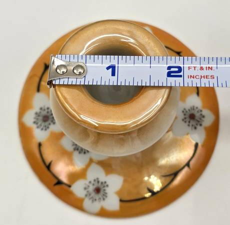 Features Hand-Painted Flowers On Orange Luster. Gold Trim On Base And Rim.