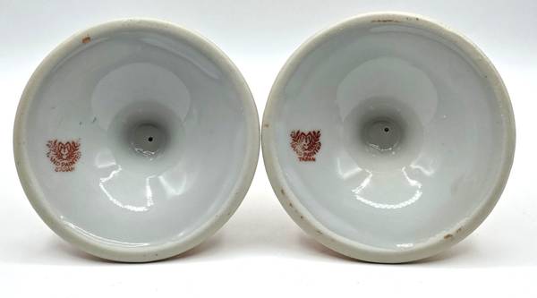 Antique Pair Of 1920's Ceramic Hand-Painted Moriyama Mori-Machi Lusterware Candle Holders