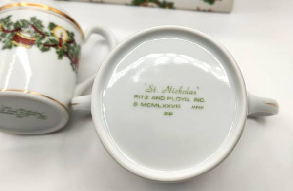 Fitz & Floyd Vintage 1978 ST NICHOLAS Santa Christmas Tree Sugar and Creamer Set