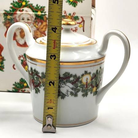 Measures approximately: Creamer measures 4 1/2" tall x 5 1/2"Handle edge to handle edge. Creamer measures 4" at tallest point x 4 1/4" tip of spout to handle edge.